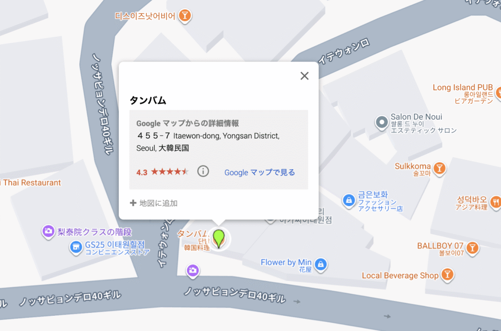 📍 住所: ソウル特別市 龍山区 梨泰院洞